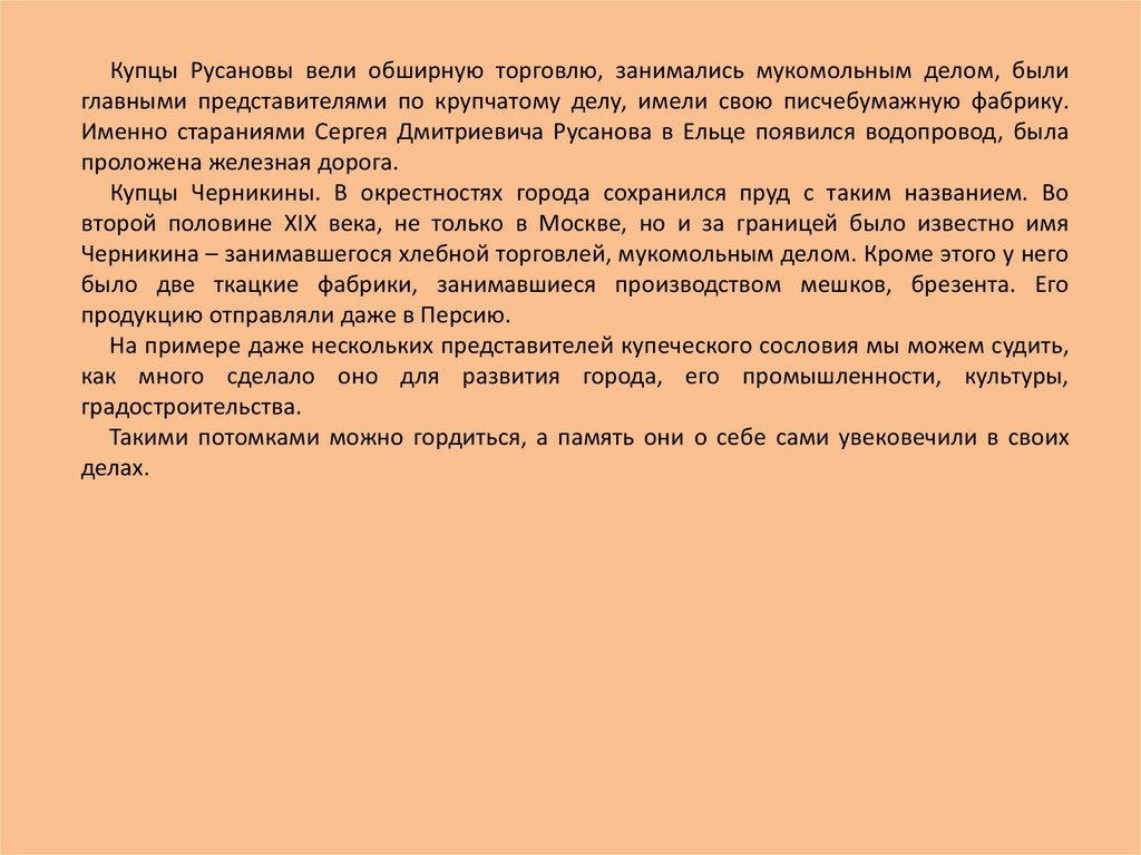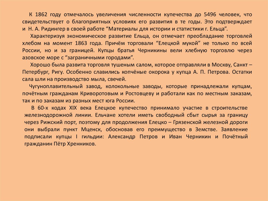 можем узнать не только имена Елецких купцов, но какой предпринимательской