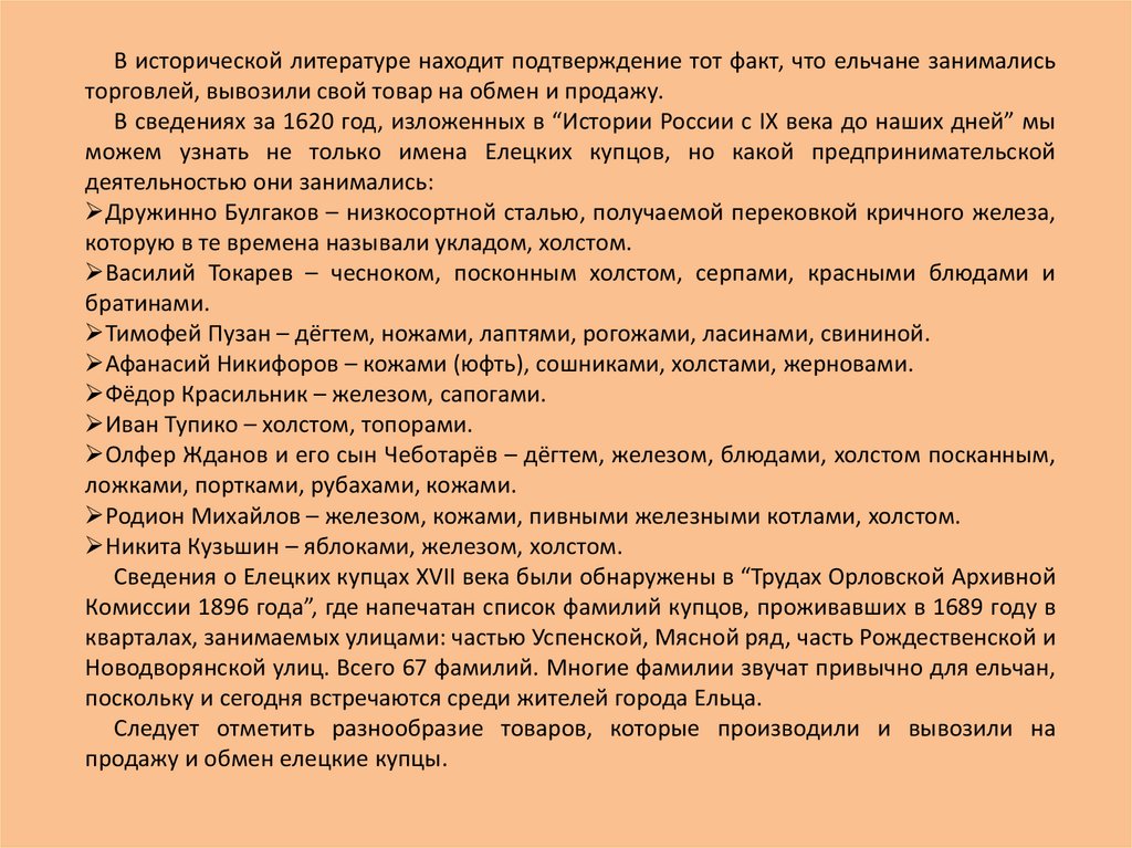 Сведения о Елецких купцах XVII века были обнаружены в “Трудах Орловской Архивной