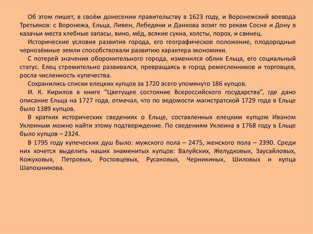 В кратких исторических сведениях о Ельце, составленных елецким купцом Иваном