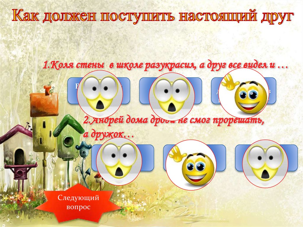 1.Коля стены в школе разукрасил, а друг все видел и …Всем об этом