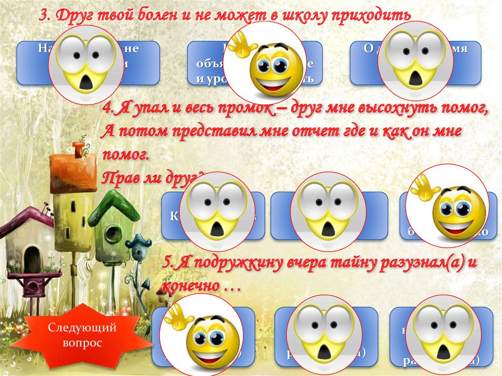 3. Друг твой болен и не может в школу приходитьНавещать его не