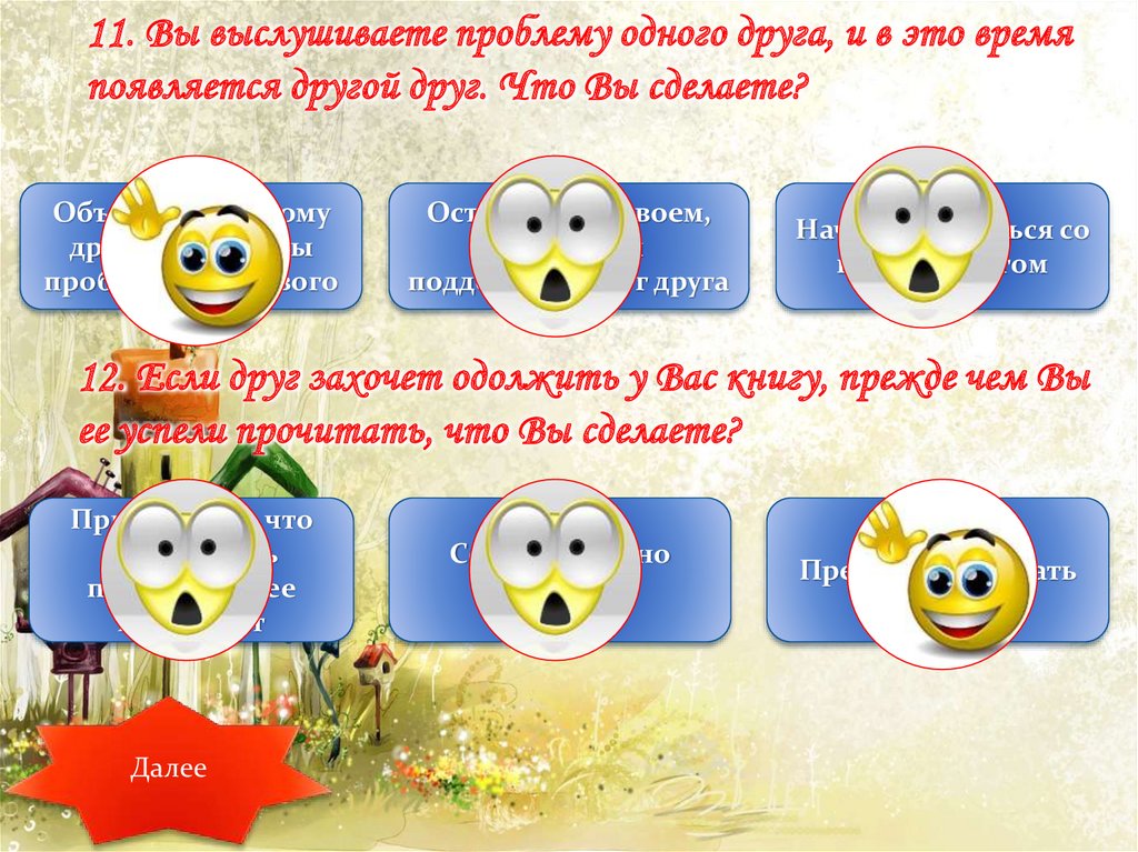 11. Вы выслушиваете проблему одного друга, и в это времяпоявляется другой друг. Что Вы сделаете?