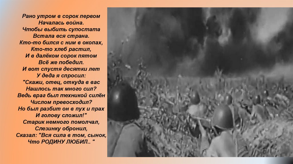 Рано утром в сорок первомНачалась война.