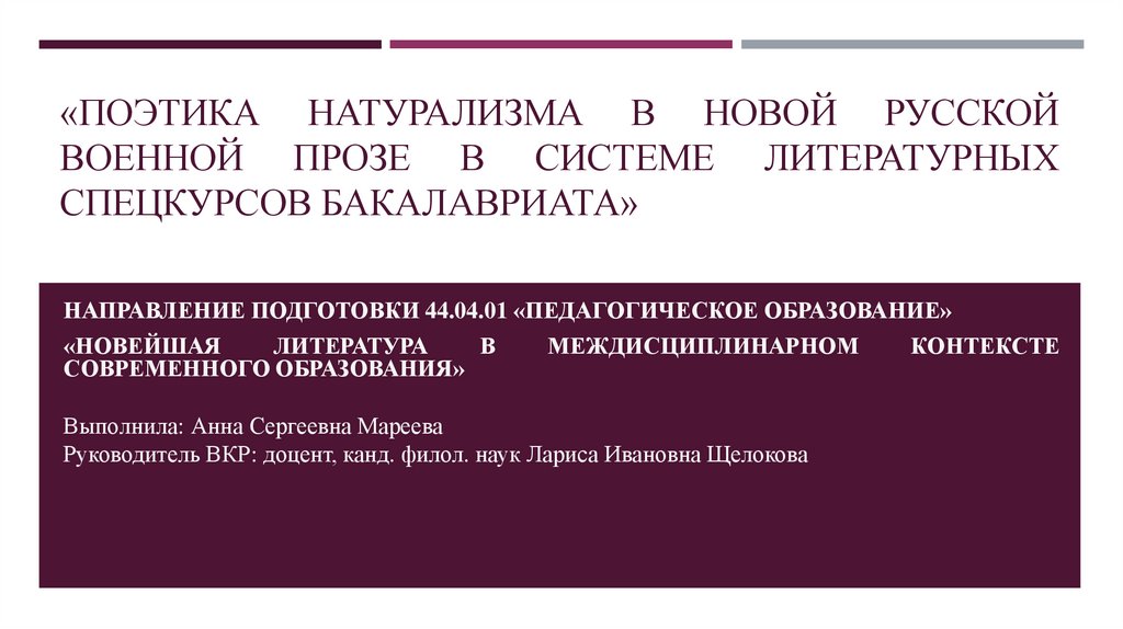 1. «Поэтика натурализма в новой русской военной прозе в системе литературных спецкурсов бакалавриата»