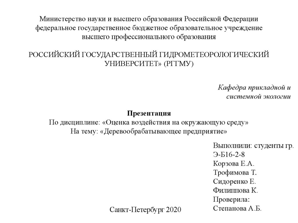 По дисциплине: «Оценка воздействия на окружающую среду»
