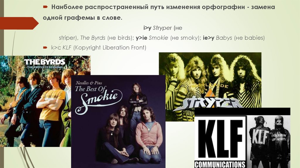 striper), The Byrds (не birds); y>ie Smokie (не smoky); ie>y Babys (не babies)
