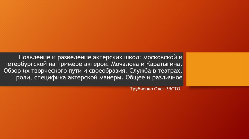 Появление и разведение актерских школ: московской и петербургской на примере актеров: Мочалова и Каратыгина
