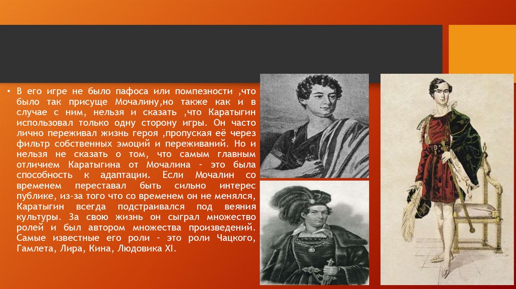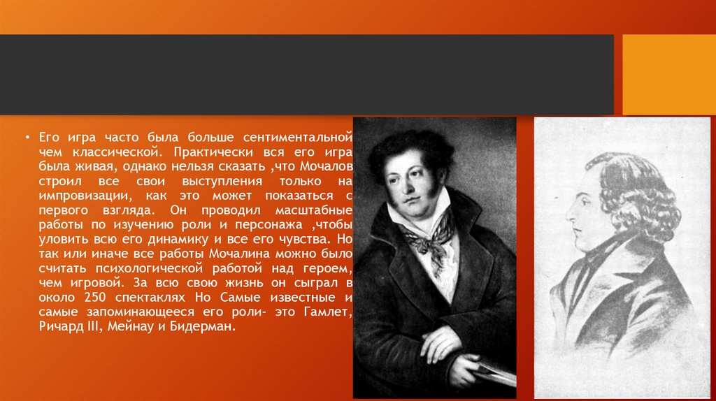• Павел Степанович Мочалов родился в семьеактёров и его судьба, можно сказать, была