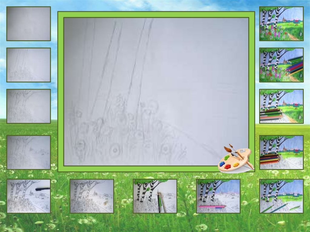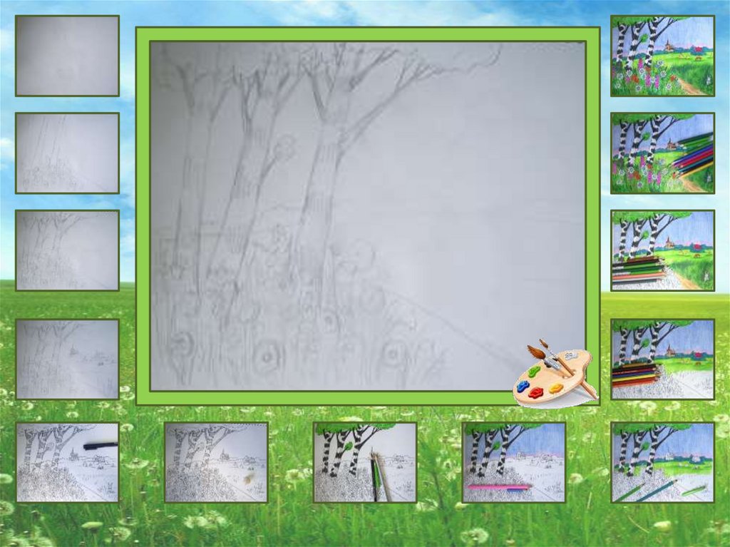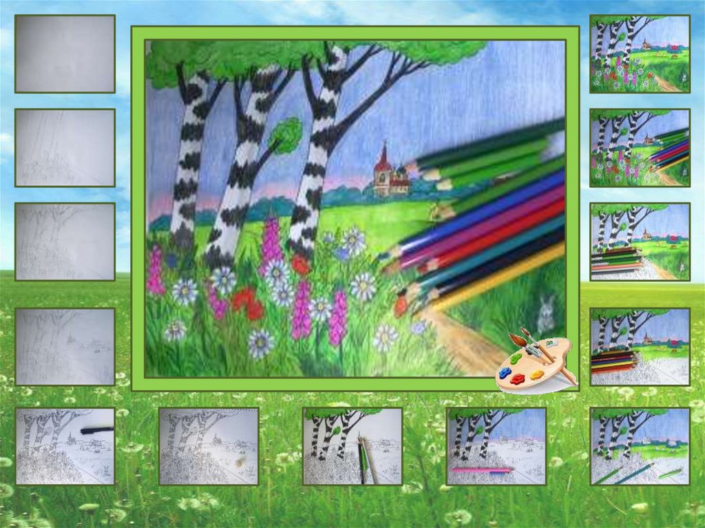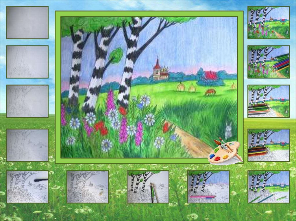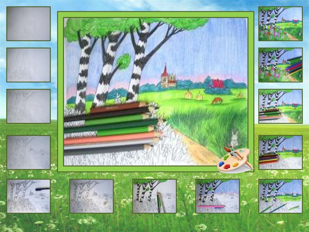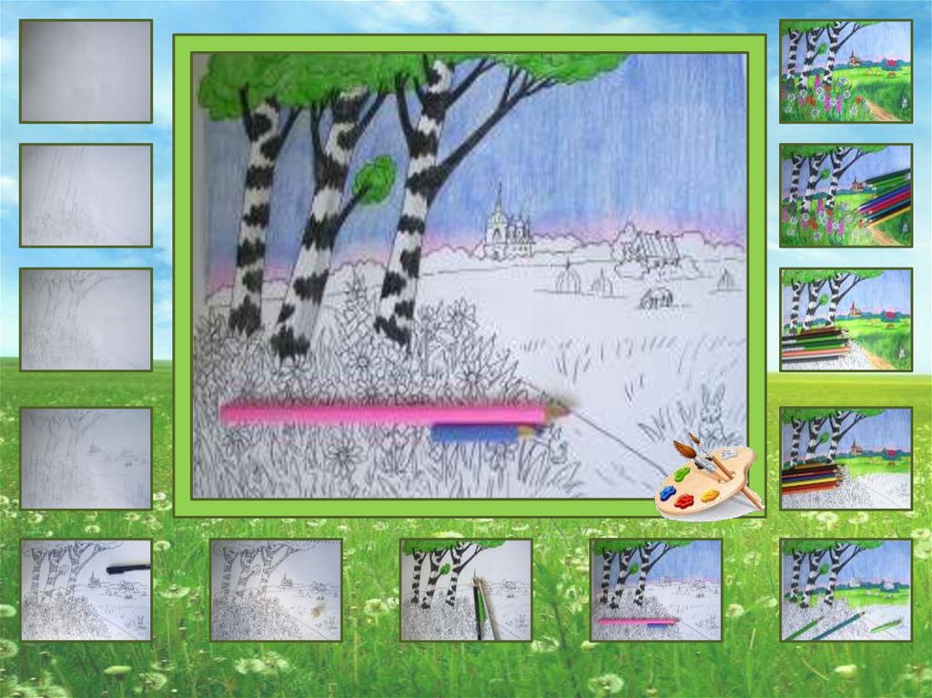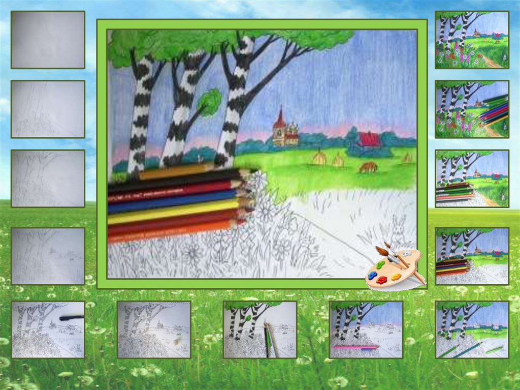 1. Давайте нарисуем летний пейзаж карандашами