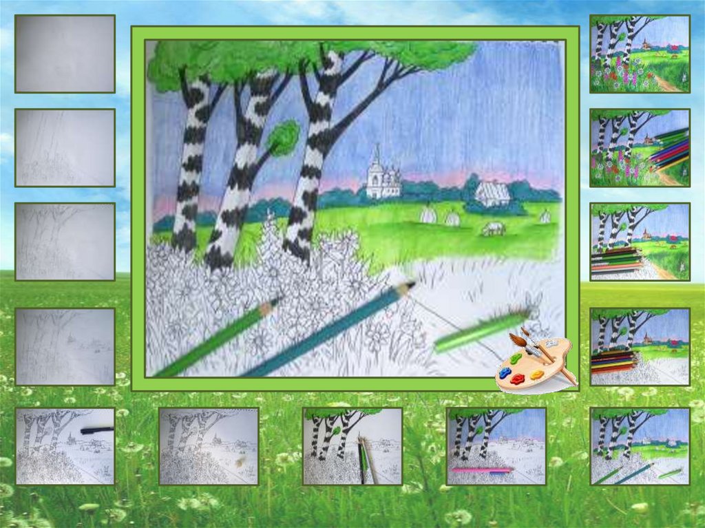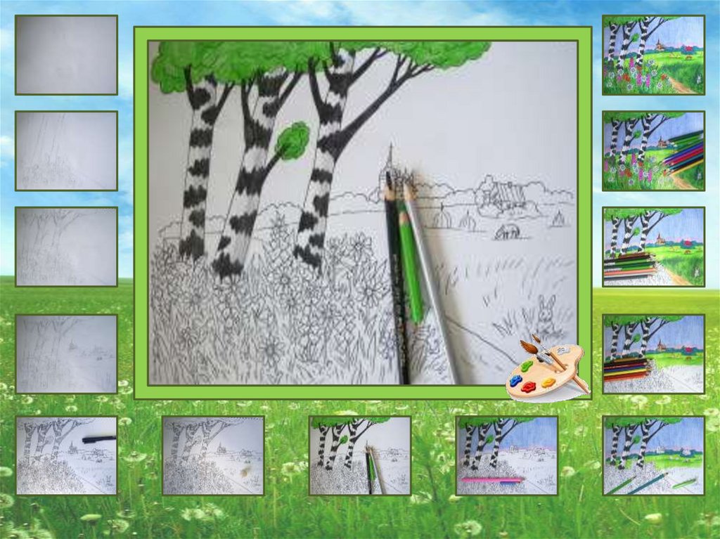 Давайте нарисуем летний пейзаж карандашами
