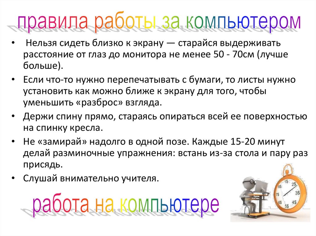 расстояние от глаз до монитора не менее 50 - 70см (лучше