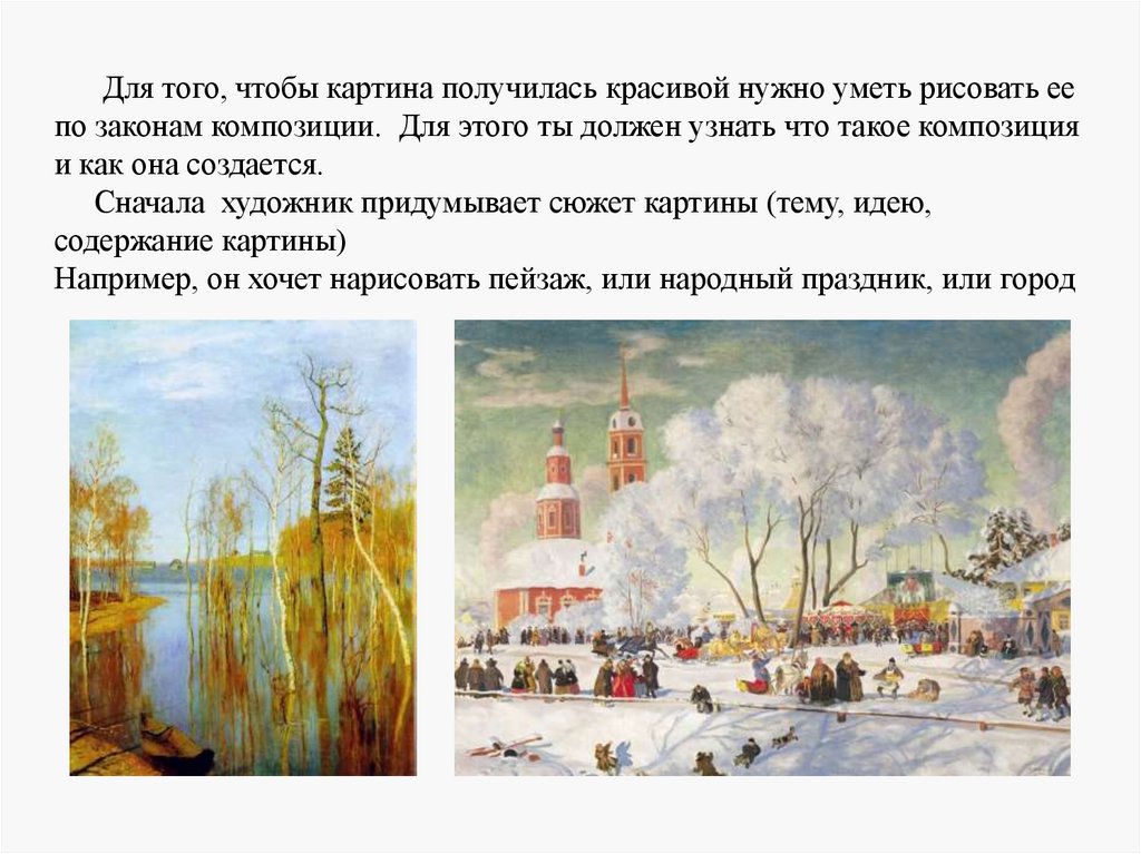 Итак, композиция – это соединение всехчастей картины на основе задуманной идеи.