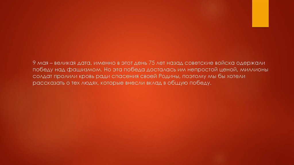 9 мая – великая дата, именно в этот день 75 лет назад советские войска одержалипобеду над фашизмом. Но эта победа досталась им непростой ценой, миллионы