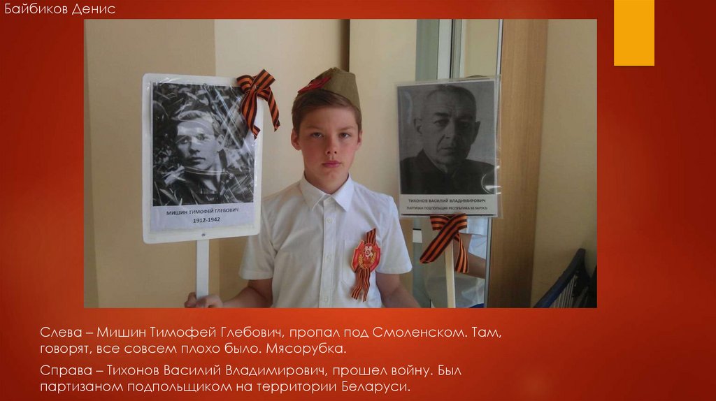 Байбиков ДенисСлева – Мишин Тимофей Глебович, пропал под Смоленском. Там,