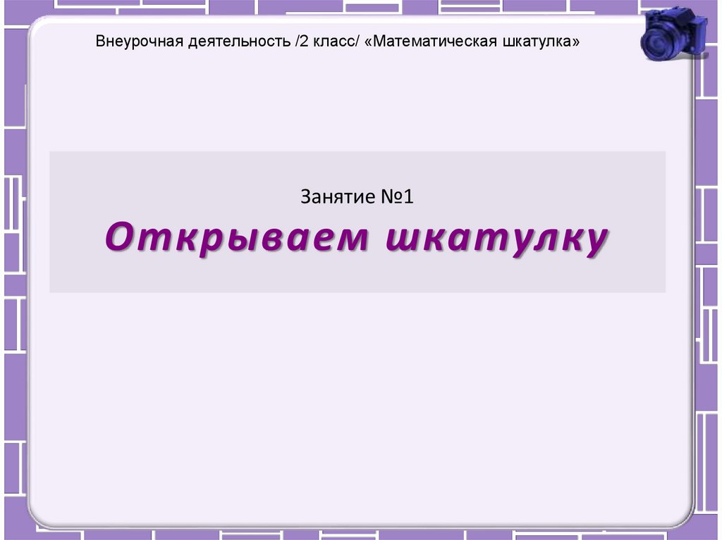 Внеурочная деятельность /2 класс/ «Математическая шкатулка»Занятие №1
