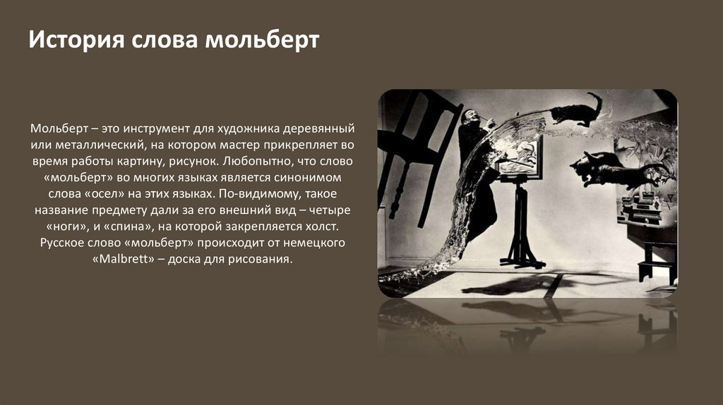 История слова мольбертМольберт – это инструмент для художника деревянный