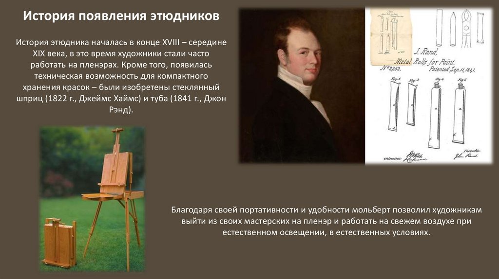 История появления этюдниковИстория этюдника началась в конце XVIII – середине
