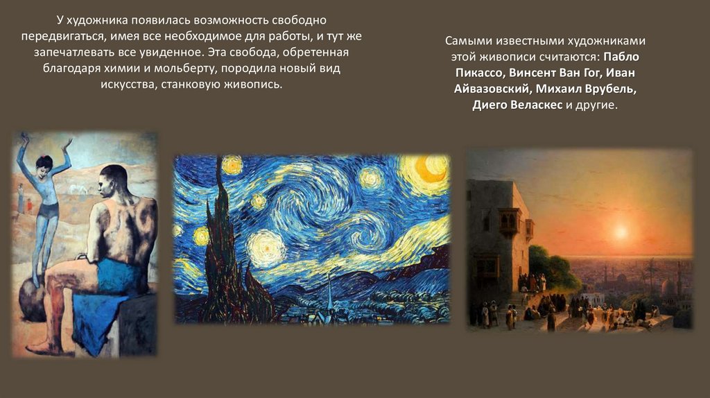 Благодаря своей портативности и удобности мольберт позволил художникам
