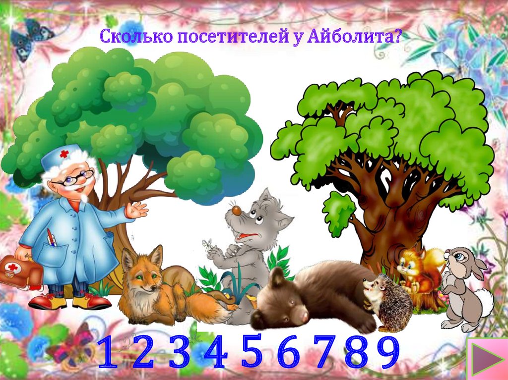 Сколько посетителей у Айболита?1 2 3 4 5 6 789