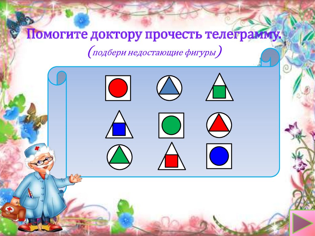 Помогите доктору прочесть телеграмму.(подбери недостающие фигуры)