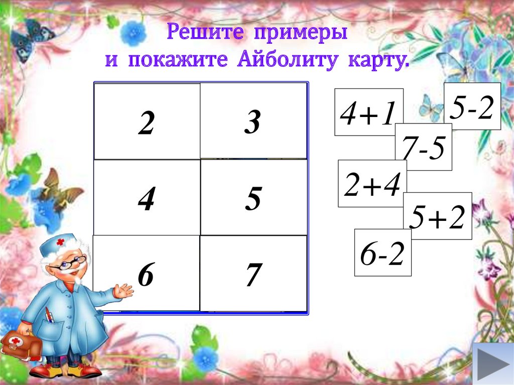 Решите примерыи покажите Айболиту карту.