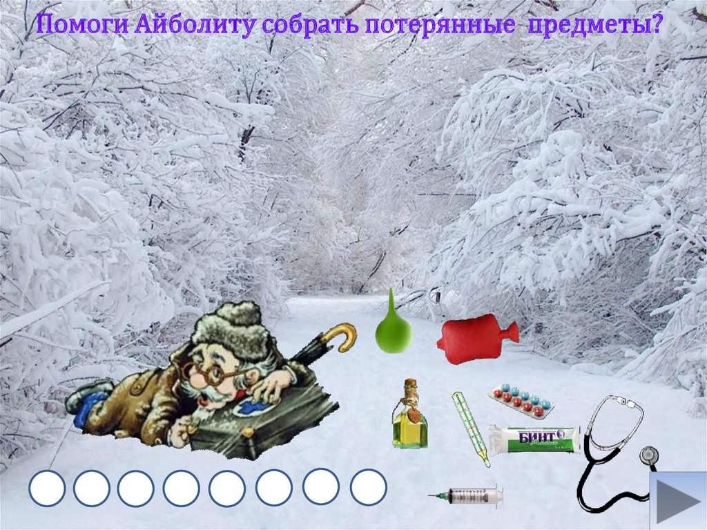 Помоги Айболиту собрать потерянные предметы?21.