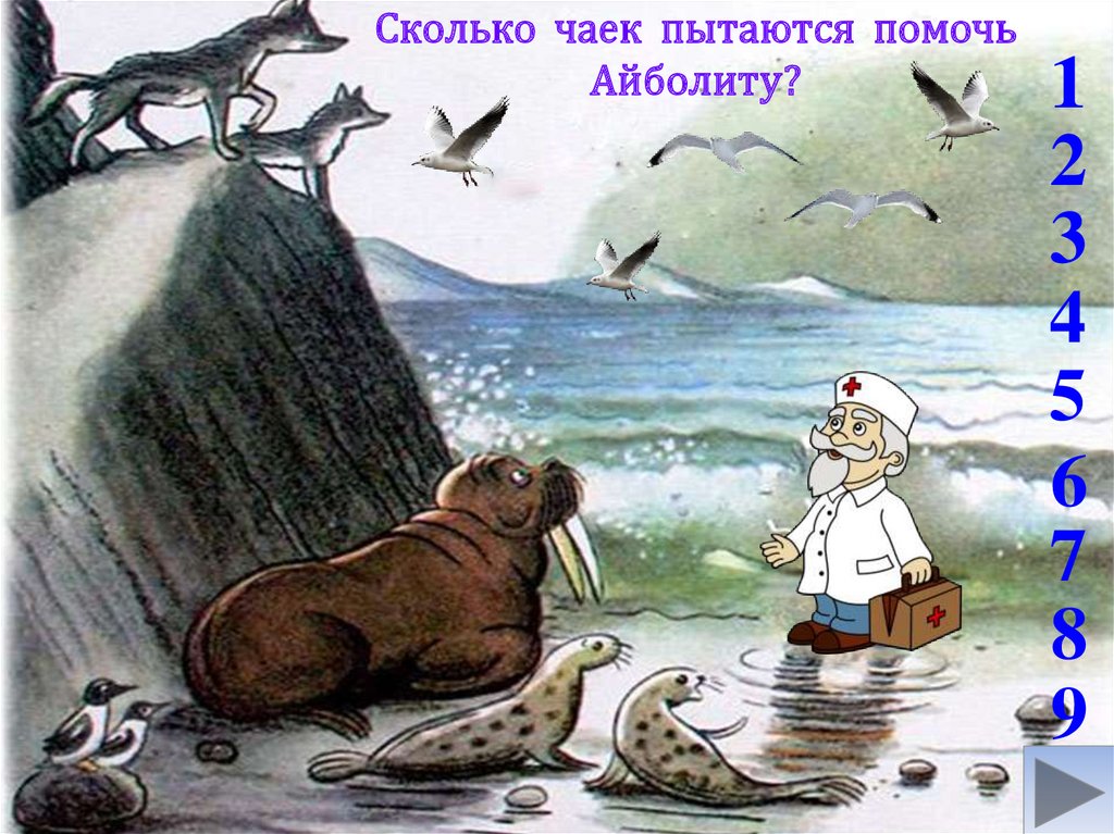 «Айболита сопровождают чайки идельфины. Кого больше чаек или