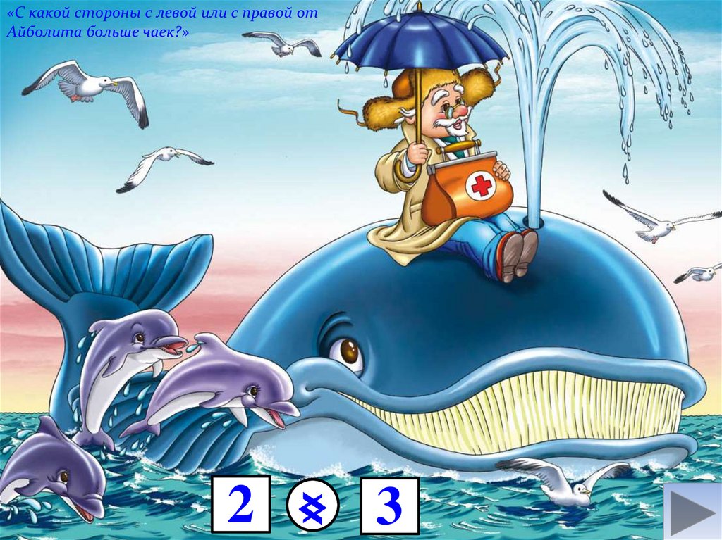 «С какой стороны с левой или с правой отАйболита больше чаек?»