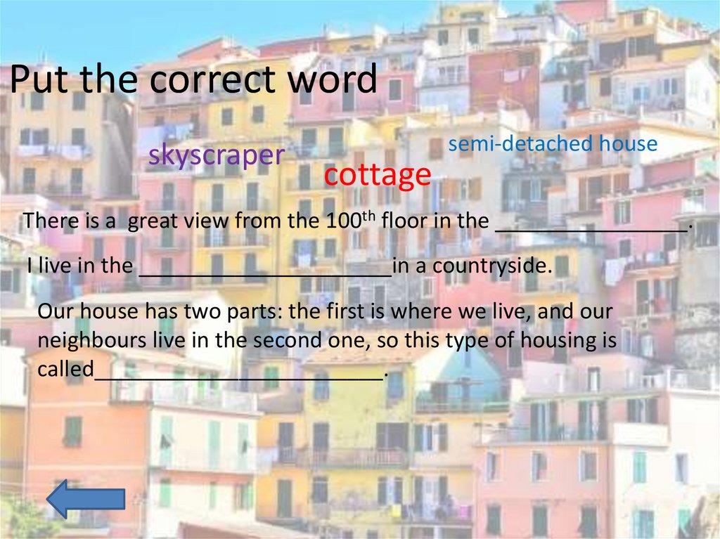 Put the correct wordskyscraper