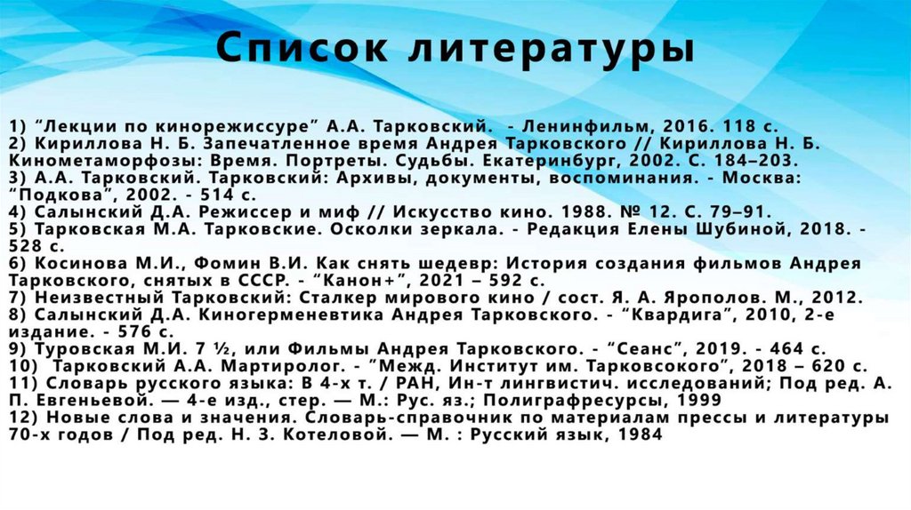 Статистические особенности киноязыка фильмов А. А. Тарковского
