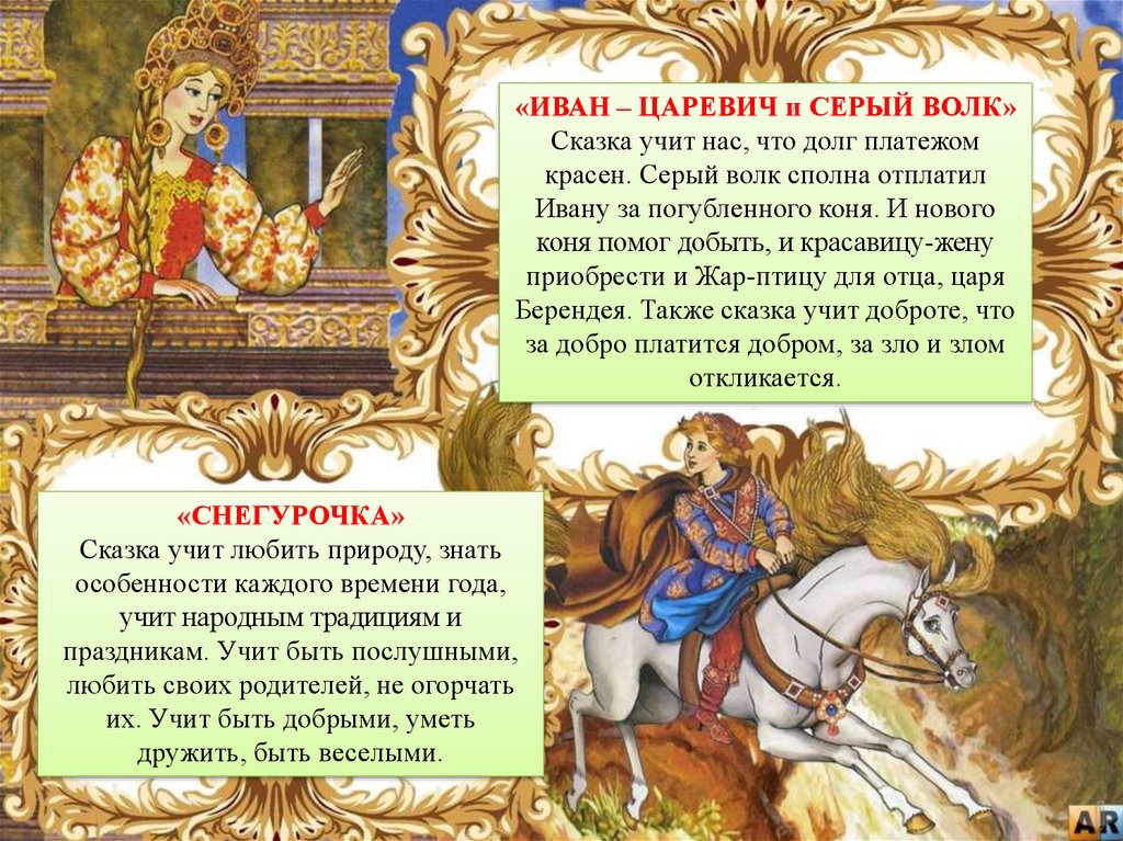 «ИВАН – ЦАРЕВИЧ и СЕРЫЙ ВОЛК»Сказка учит нас, что долг платежом