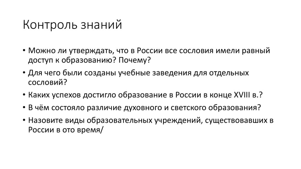 • Можно ли утверждать, что в России все сословия имели равныйдоступ к образованию? Почему?