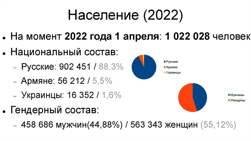 Население (2022)На момент 2022 года 1 апреля: 1 022 028 человек