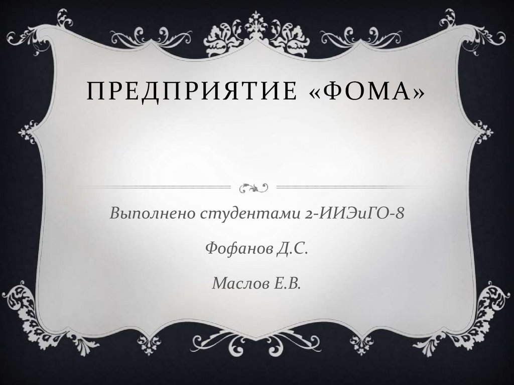 ПРЕДПРИЯТИЕ «ФОМА»Выполнено студентами 2-ИИЭиГО-8