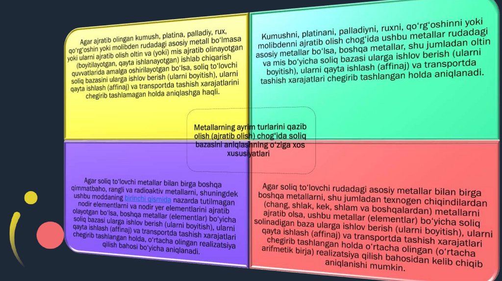 11. Metallarning ayrim turlarini qazib olish (ajratib olish) chog‘ida soliq bazasini aniqlashning o‘ziga xos xususiyatlari