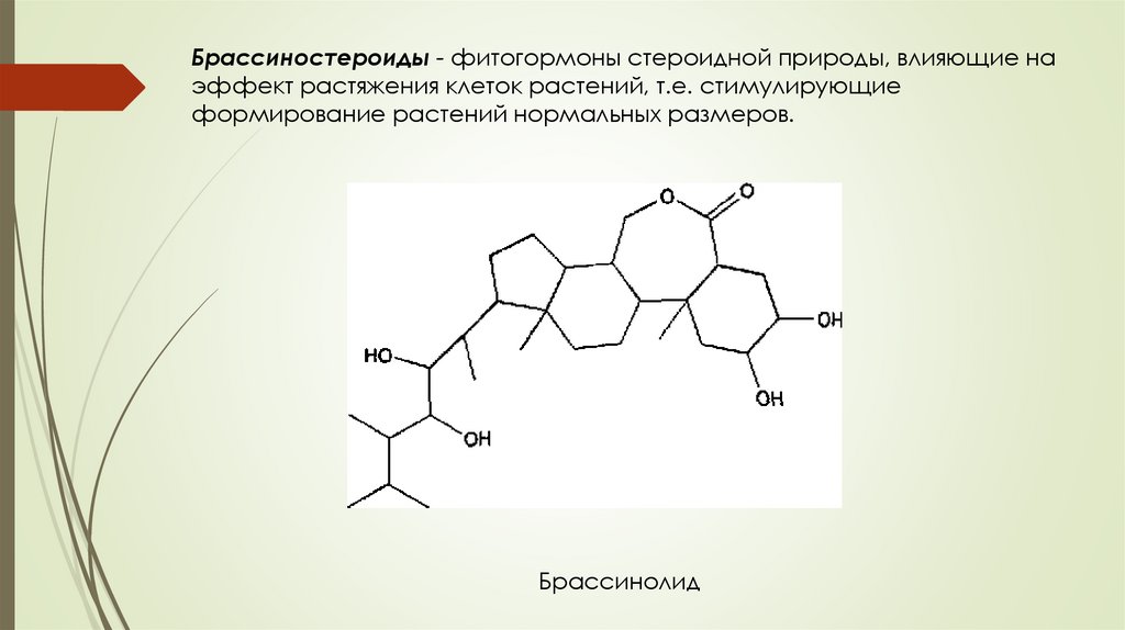 Брассиностероиды - фитогормоны стероидной природы, влияющие наэффект растяжения клеток растений, т.е. стимулирующие
