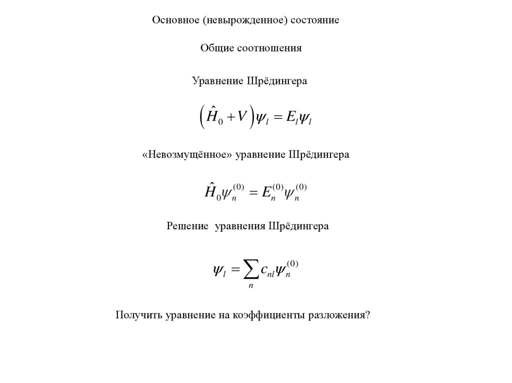 Уравнение Шрёдингера в представлении с.ф. невозмущённого гамильтониана