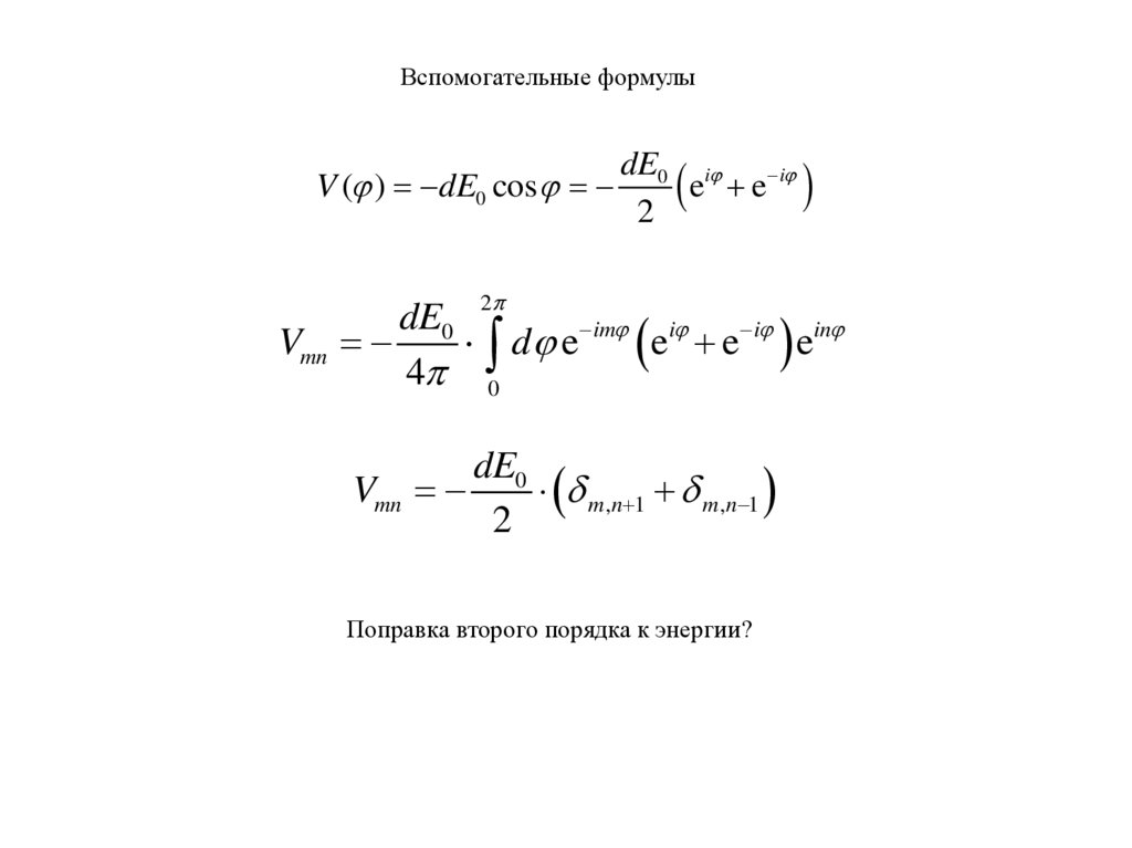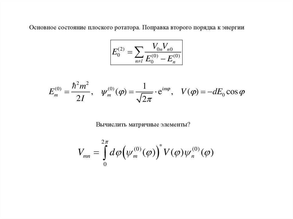 Теория возмущений. Плоский ротатор (основное состояние)Уравнение Шрёдингера для заряженного 2D ротатора в однородном электрическом поле