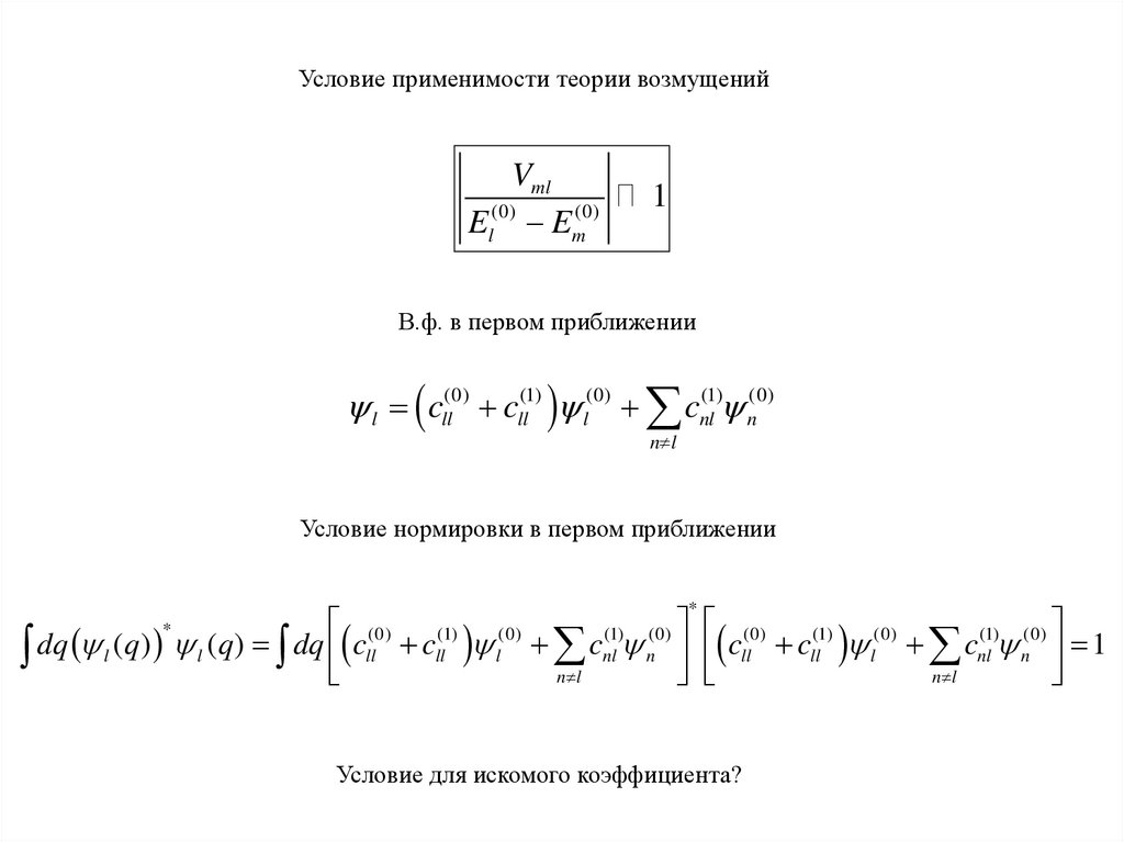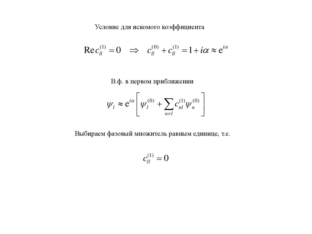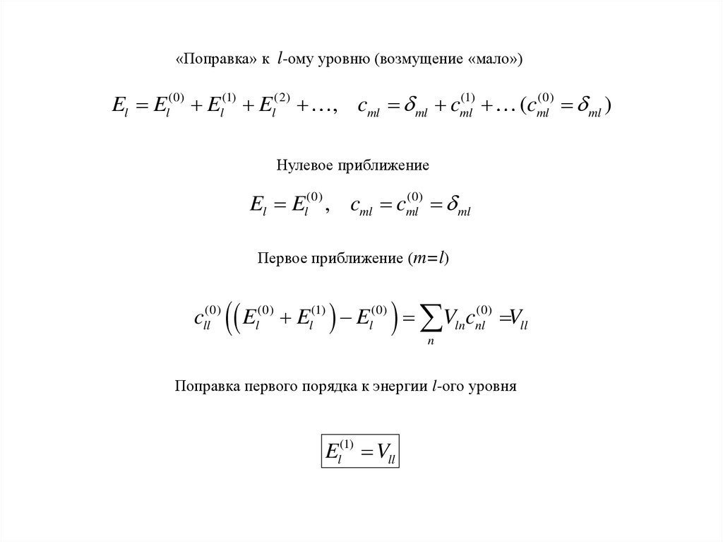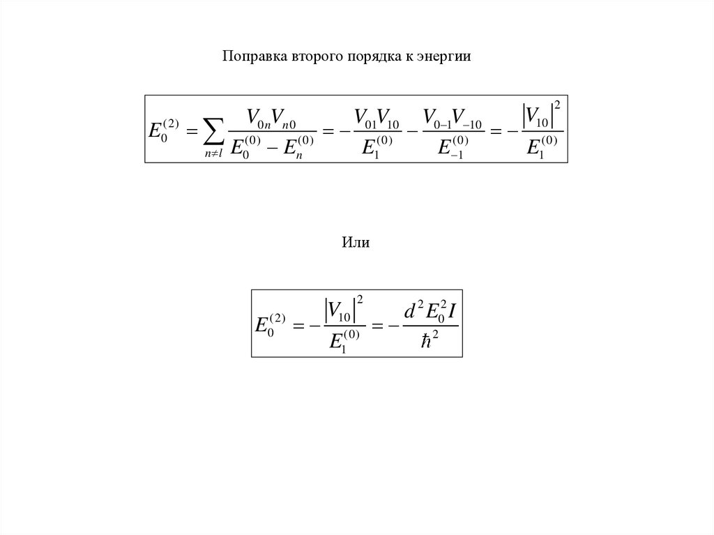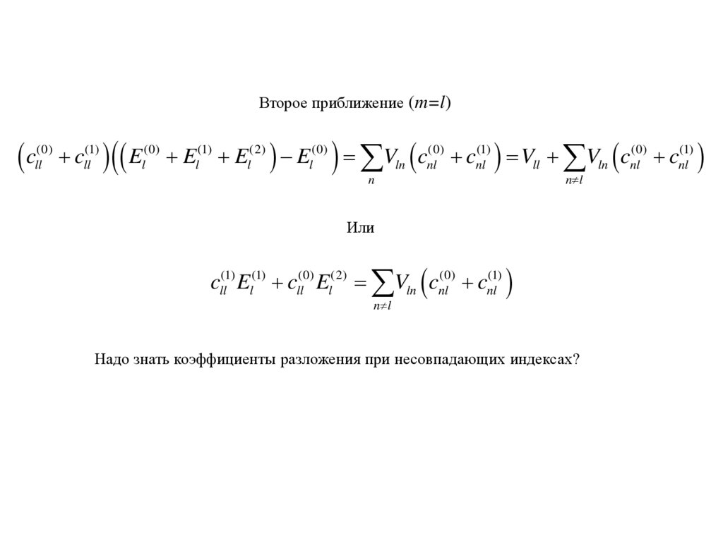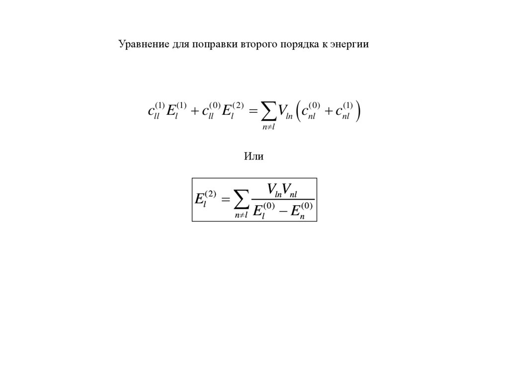 Уравнение для поправки второго порядка к энергииcll(1) El(1) cll(0) El(2) Vln cnl(0) cnl(1)