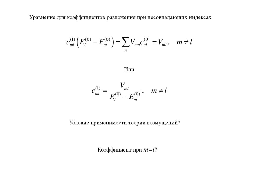 Уравнение для коэффициентов разложения при несовпадающих индексах(1)