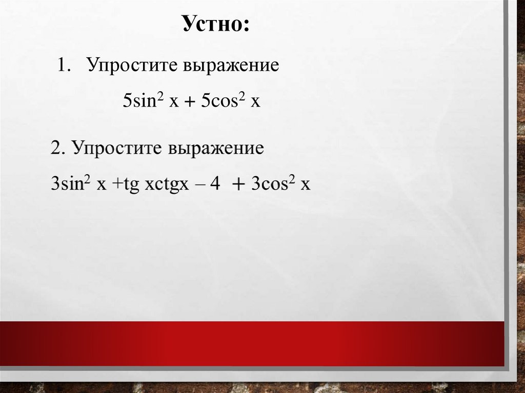 Устно:1. Упростите выражение