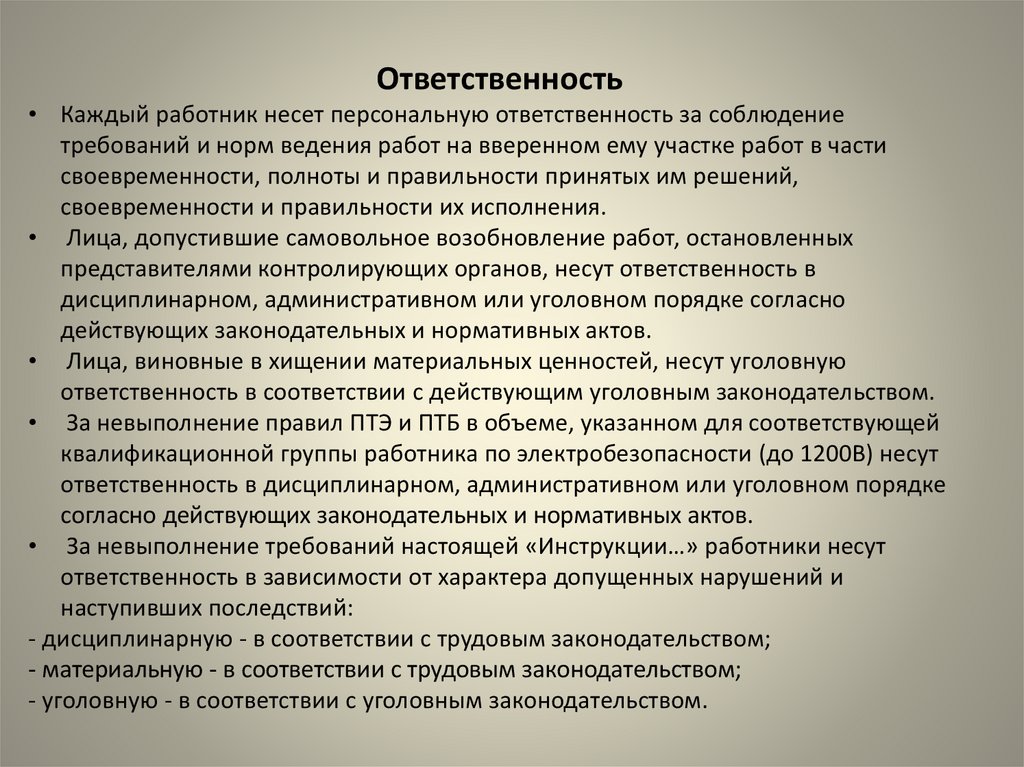 Ответственность• Каждый работник несет персональную ответственность за соблюдение