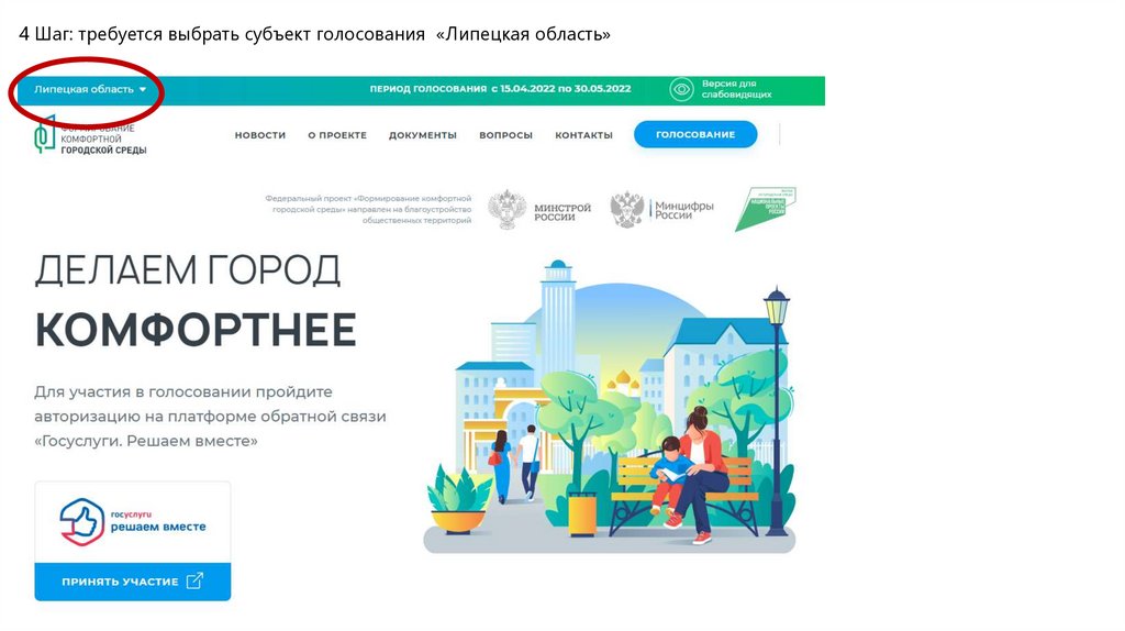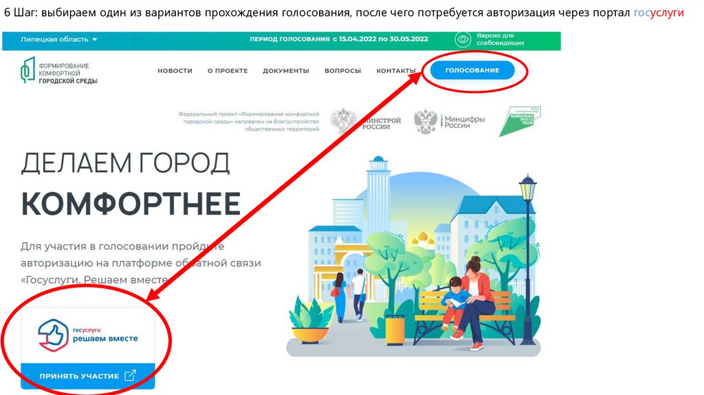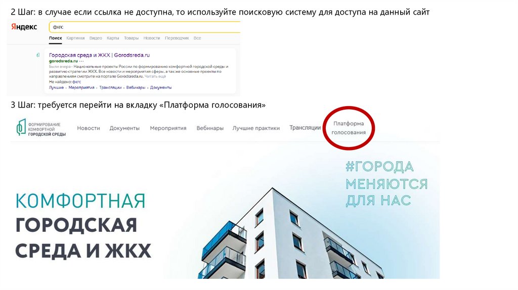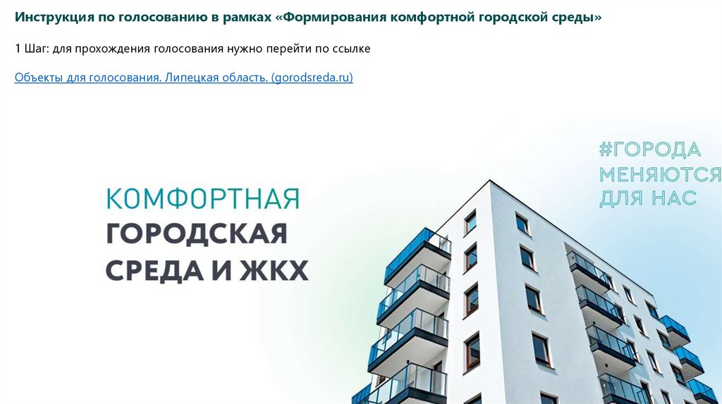 Инструкция по голосованию в рамках «Формирования комфортной городской среды»1 Шаг: для прохождения голосования нужно перейти по ссылке
