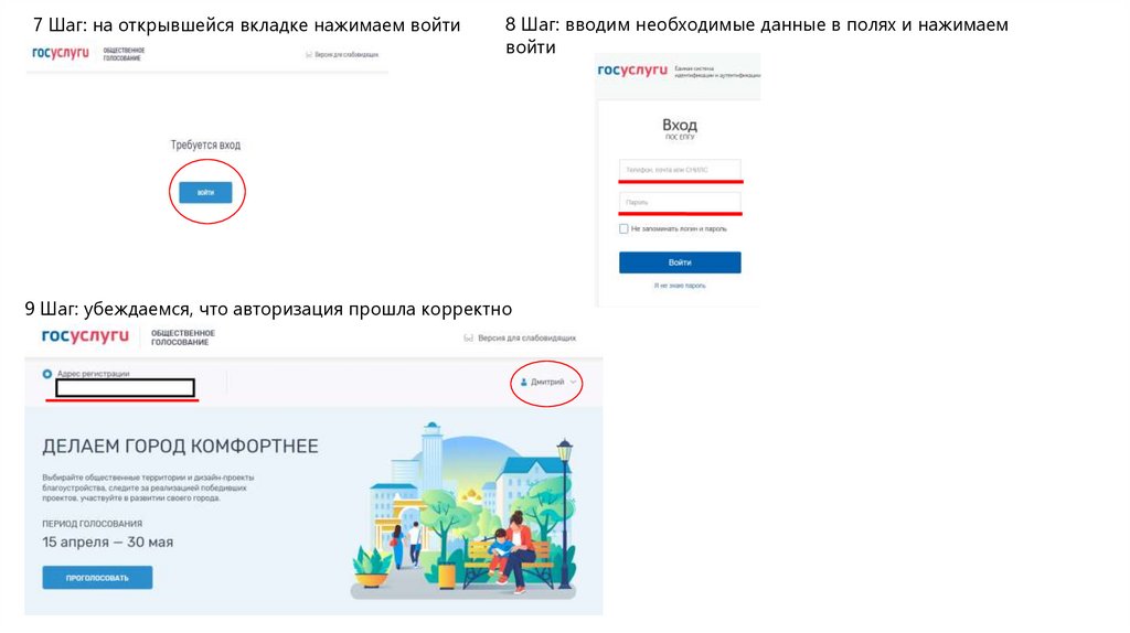 6 Шаг: выбираем один из вариантов прохождения голосования, после чего потребуется авторизация через портал госуслуги6.