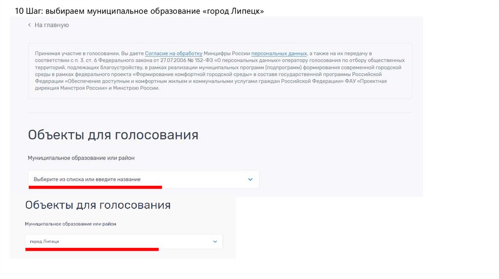 10 Шаг: выбираем муниципальное образование «город Липецк»8.