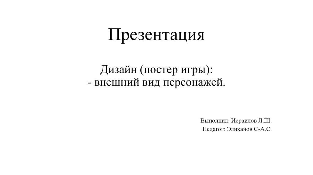 Презентация Дизайн (постер игры): - внешний вид персонажей.