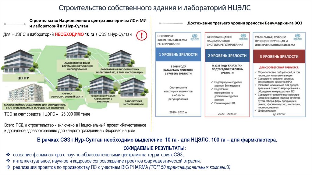 Строительство собственного здания и лабораторий НЦЭЛССтроительство Национального центра экспертизы ЛС и МИ