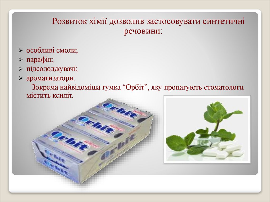 Зокрема найвідоміша гумка “Орбіт”, яку пропагують стоматологи