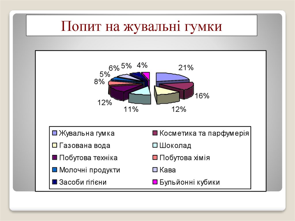Попит на жувальні гумки6% 5% 4%
