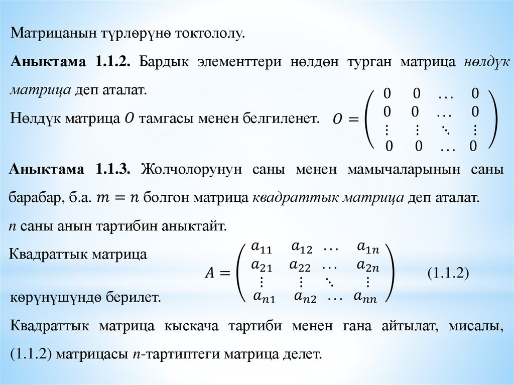 1. МАТРИЦАЛАР ТЕОРИЯСЫ